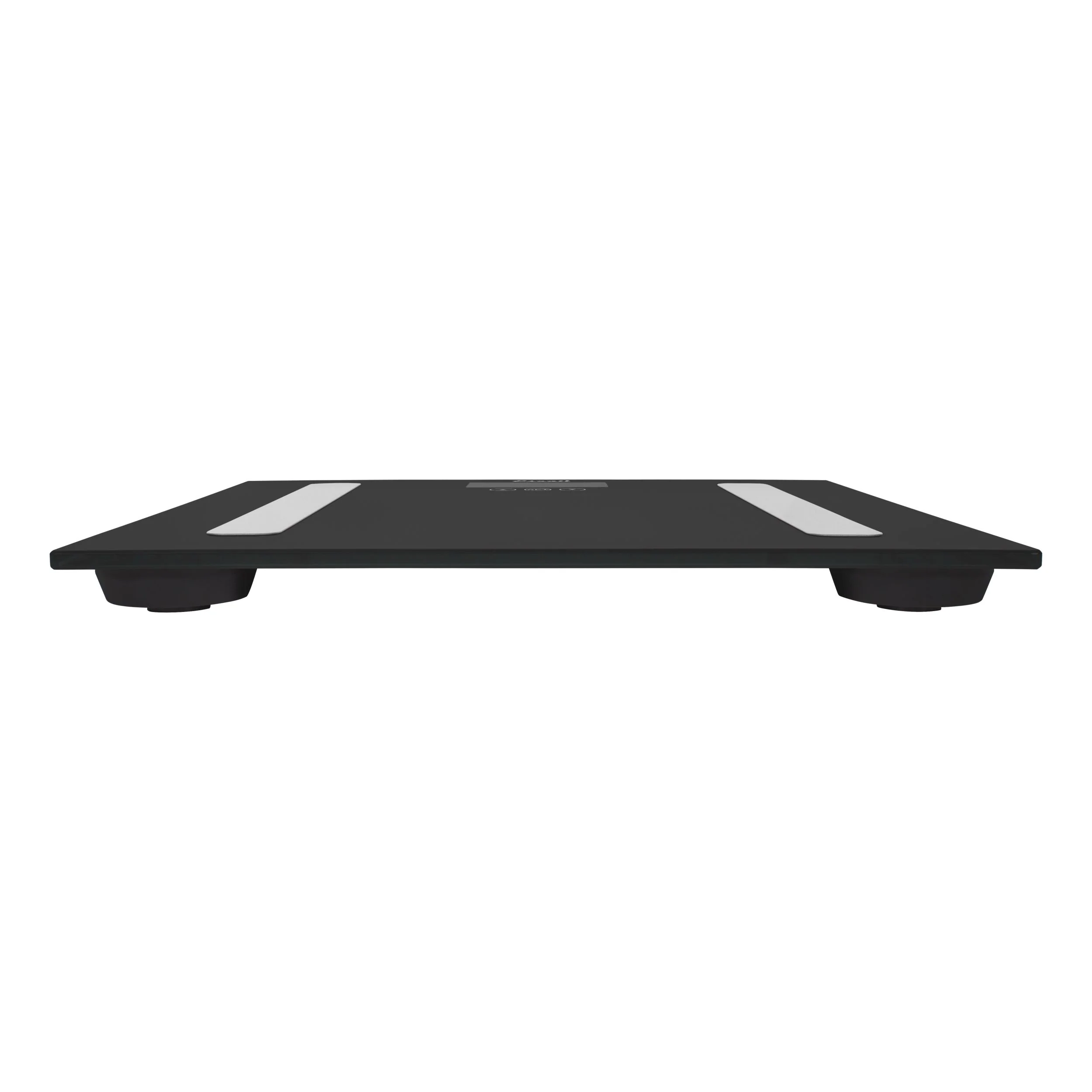 The tempered safety glass platform measures less than 1 inch thick, giving the scale a low center of gravity and excellent stability.