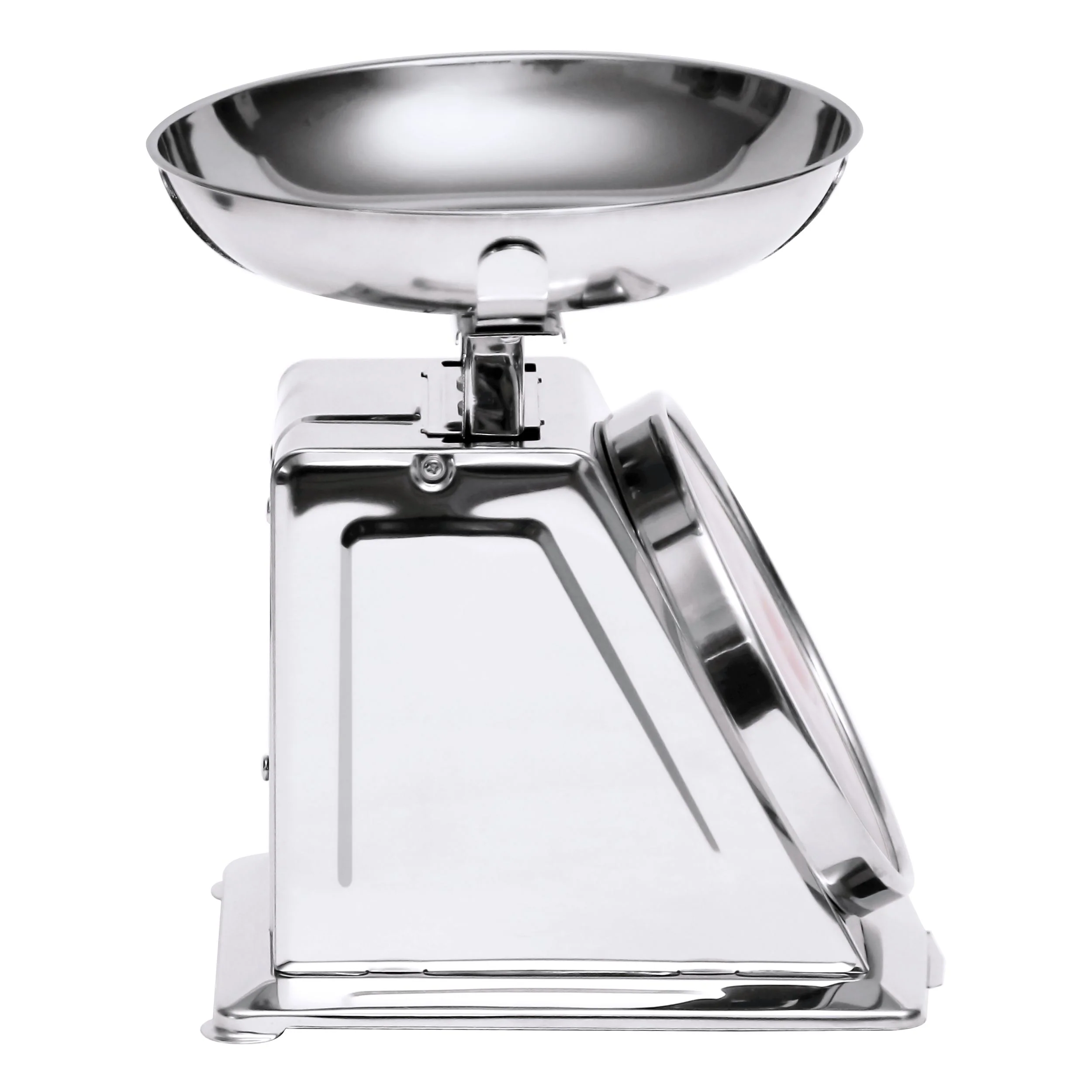 The Mercado Mechanical Dial Scale (11 lb capacity) feature accurate measuring in an environment where a digital scale is not essential. This durable spring scale has a metal frame, easy to read dial display and stainless steel bowl.
